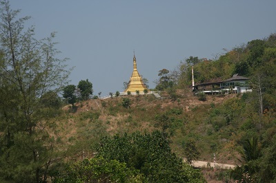 Ξεκινήσαμε για την Pa Nyit λοιπόν. Κατηφορίζοντας από το Dawei νότια, στο χωριό Launglon στρίψαμε δεξιά. Σύντομα βγήκαμε από τον τσιμεντένιο δρόμο και βρεθήκαμε σε χωματόδρομο. Ο τυπάκος δεν πολυήξερε που πηγαίναμε. Προσπαθούσαμε να βρούμε την παραλία την Pa Nyit. Ρώτησε 2-3 φορές όπου έβρισκε κανένα σπίτι και πηγαίναμε – πηγαίναμε. Ο δρόμος γινότανε όλο και πιο δύσβατος. Σε μία ανηφόρα κατέβηκα και την περπάτησα με τα πόδια γιατί δεν άντεχε να την ανεβεί το μηχανάκι δικάβαλο. Ήμασταν κοντά στην ακτή αλλά χωρίς πρόσβαση σε αυτή λόγω της βλάστησης. Μιάμιση ώρα πηγαίναμε και τελικά βρεθήκαμε στην Παγόδα Myaw Yit, όπου καταλήγει ο κανονικός δρόμος από το βορά από το χωριό Maungmagan. Είχαμε διασχίσει το κομμάτι που μου είχαν πει ότι έχει τόσο χάλια δρόμο που δεν θα μπορούσα να περάσω! (πορτοκαλί χρώμα στο χάρτη, δείτε πιο κάτω)